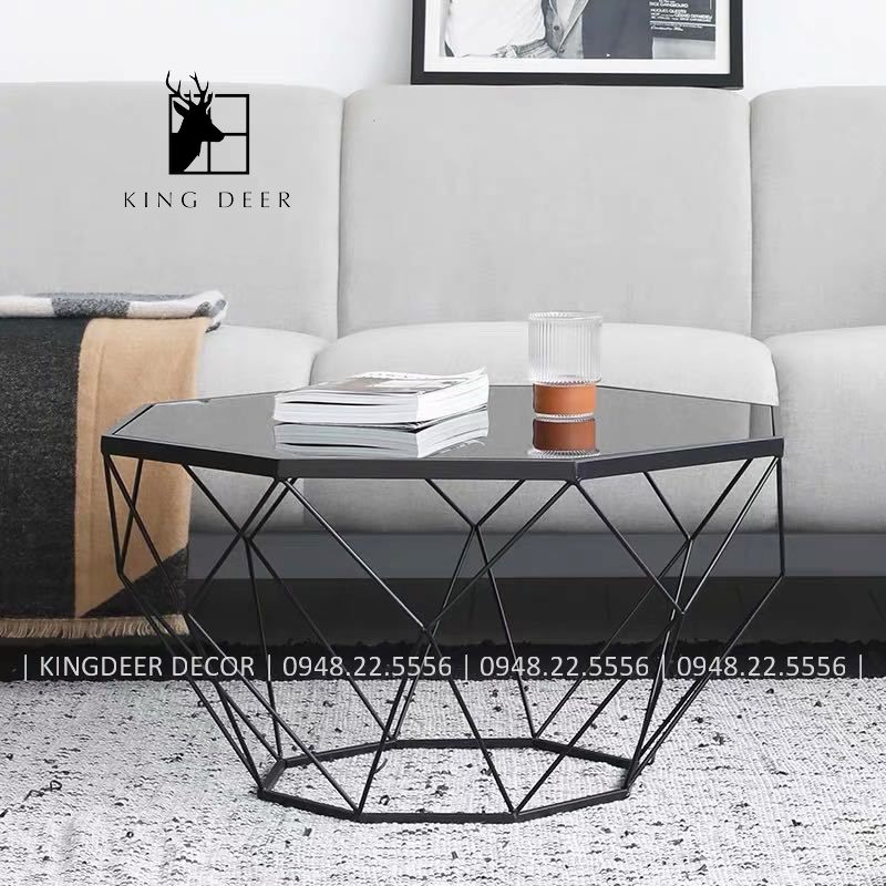 Mang nét cắt của viên kim cương, mẫu bàn sofa diamond tạo điểm nhấn ngay cái nhìn đầu tiên. Mặt kính kết hợp khung sắt sơn tĩnh điện rất phù hợp với phòng khách nhỏ, hay cửa hàng.