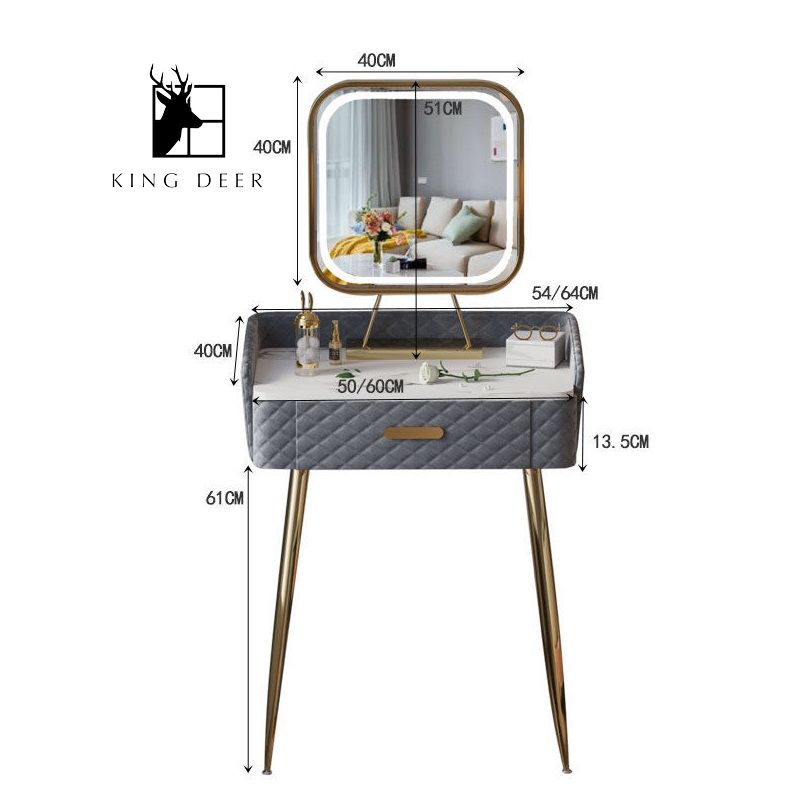Chất liệu: MDF, sắt sơn tĩnh điện, đá trắng vân mây