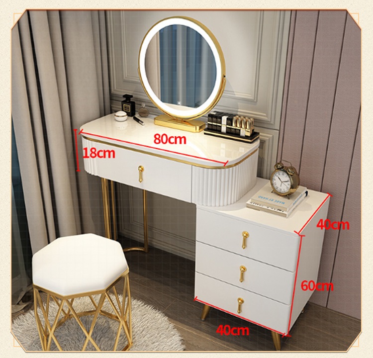 Bộ bàn trang điểm Stella này mang đến sự tinh tế tối giản, kết hợp hài hòa với bất kỳ kiểu trang trí hiện đại nào. Mặt bàn hình bầu dục sơn mài màu trắng có kiểu dáng đẹp và chống va chạm. 2 ngăn kéo và một tủ 3 ngăn cung cấp cho bạn khả năng lưu trữ dồi dào mỹ phẩm, đồ trang sức và các vật dụng sử dụng hàng ngày. Bàn trang điểm này có thể thu lại và mở rộng, chắc chắn sẽ mang lại cho bạn trải nghiệm trang điểm vui vẻ. Được làm từ vật liệu cao cấp, nó đảm bảo vẻ đẹp lâu dài và hỗ trợ chắc chắn. Phòng khách của bạn cần có chiếc bàn trang điểm này.