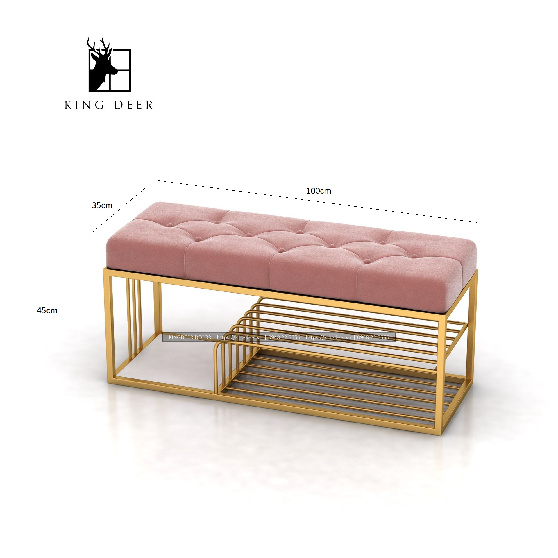 Ghế tủ giày MAIKA thanh lịch này tạo thêm phong cách ấn tượng cho ngôi nhà của bạn. Ghế bọc nhung tinh tế với lớp đệm mút tạo cho nó một nét phong cách đương đại và nét mềm mại. Kệ mở cung cấp chỗ để tạp chí và giày dép. Thêm vào đó, chân kim loại hỗ trợ chắc chắn cho thời gian sử dụng lâu dài. Mang nó về nhà và cung cấp cho không gian của bạn một khu vực tiếp khách tươm tất.