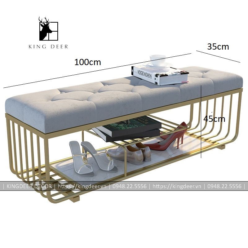 Thêm phần quyến rũ cho ngôi nhà của bạn với ghế tủ giày MALORY bọc da sang trọng cho phòng ngủ này. Được hỗ trợ bởi chân sắt sơn tĩnh điện màu vàng cổ điển, chiếc ghế giày nổi bật này tạo nên nét hiện đại trong bất kỳ không gian nào. và Thiết kế đơn giản kết hợp dễ dàng với bất kỳ phong cách trang trí nào. Hãy mang đến cho không gian nội thất của bạn một hương vị của sự tinh tế tuyệt đỉnh với chiếc ghế dài bọc nhung ngoại quan tuyệt đẹp này. Sử dụng như một chỗ để chân trong phòng ngủ, hoặc một băng ghế để giày lối vào.
