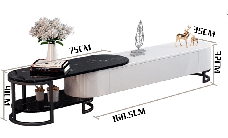 Thêm một tác phẩm bắt mắt cho phòng khách của bạn với kệ tivi cane phong cách này. Với thiết kế nổi bật, có thể mở rộng, Kệ TV này có thể đảo ngược và điều chỉnh độ dài, phù hợp với mọi không gian để đáp ứng mọi thiết kế nội thất của bạn, tuyệt đẹp và thiết thực. Được thiết kế với mặt bàn hình bầu dục mịn, nó cung cấp nhiều không gian cho các thiết bị và màn hình TV trong khi 3 ngăn kéo mang đến một giải pháp phong phú và đầy đủ để lưu trữ. Được làm từ gỗ MDF và khung sắt sơn tĩnh điện, mặt đá, nó đảm bảo tuổi thọ lâu dài cho việc sử dụng thường xuyên. Có hai màu trắng và đen, tủ TV này sẽ rất phù hợp.