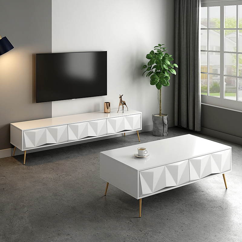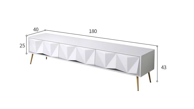 Với bề mặt nổi 3D bóng bẩy và các chi tiết chân sơn tĩnh điện màu vàng, kệ tivi Carina mang đến phong cách Bắc Âu đầy phong cách cho bất kỳ không gian nào. Với phần trên rộng rãi, nó có thể chứa các trò chơi truyền thông và truyền hình của bạn cũng như một loạt các tác phẩm nghệ thuật một cách hoàn hảo. Tự hào với ba ngăn kéo rộng rãi, nó là nơi tuyệt vời để lưu trữ DVD, thiết bị điều khiển từ xa, sách và các tỷ lệ cược và kết thúc khác. Được chế tác từ khung gỗ và đế kim loại, nó đảm bảo điểm nhấn quyến rũ và sử dụng lâu dài trong nhiều năm tới.